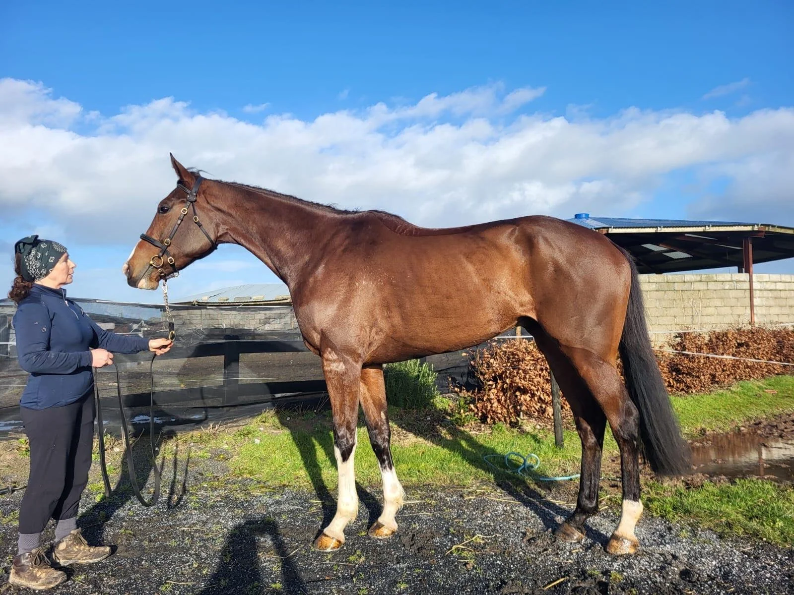 We contacted Marie Harding (his trainer) and got a video and photos. He took our breath away, a stunning-looking horse who covers a lot of ground. Peter arranged to go down and see him, and I reflected on how appropriate his name was: a name Kim would have come up with while pointing to herself!